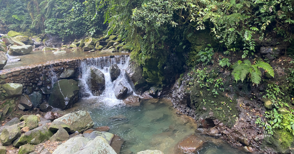Kolam yang bertingkat-tingkat membuat beberapa titik air terjun mini. Kami pun meniti pinggir-pinggir kolam sambil melalui aliran-aliran air yang sejuk dan jernih. Tampak beberapa anak muda menyeburkan diri ke dalam kolam. Sebagian berenang di area kolam yang lebih dalam.